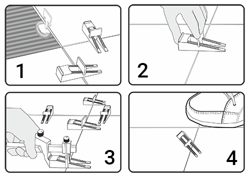 Необходимо зажимов: от 45 штук (используя 2 зажима на одну сторону плитки)